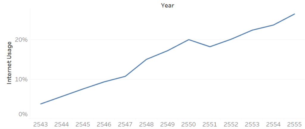 - แผนภูมิพื้นที่ (Area Chart) หากต้องการแสดงให้เห็นถึงองค์ประกอบในแต่ละช่วงเวลาประกอบกับการเปลี่ยนแปลงตามช่วงเวลาอาจเลือกใช้แผนภูมิพื้นที่นำเสนอข้อมูลชุดนั้น