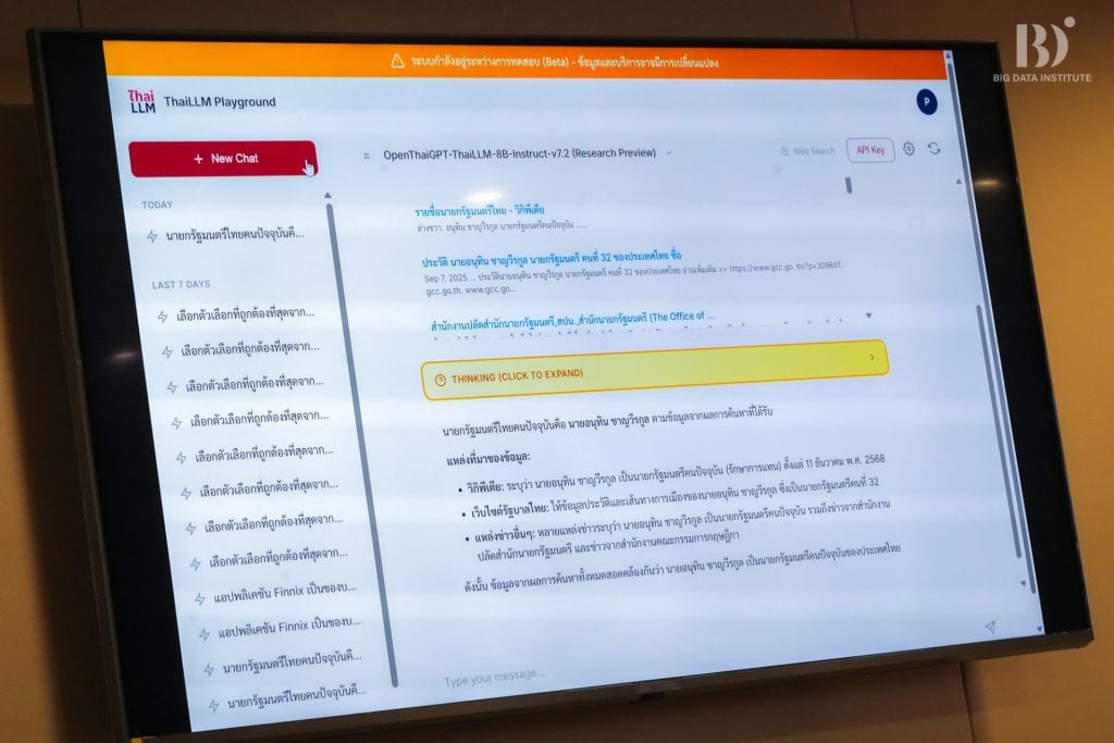 ศ. ดร.ธีรณี อจลากุล ผู้อำนวยการสถาบันข้อมูลขนาดใหญ่ กล่าวว่า ปัจจุบันเทคโนโลยีปัญญาประดิษฐ์ หรือ AI กลายเป็นส่วนหนึ่งในชีวิตของคนไทย แต่กลับพบว่า AI ส่วนใหญ่ถูกฝึกจากข้อมูลภาษาอังกฤษจำนวนมหาศาล โดยมีสัดส่วนมากกว่า 40% ของข้อมูลทั้งหมด ขณะที่ข้อมูลภาษาไทยมีสัดส่วนเพียง 0.4% เท่านั้น  ซึ่งถือว่ามีพื้นที่น้อยมาก สะท้อนให้เห็นว่าประเทศไทยขาด “โมเดลภาษา” ที่เข้าใจบริบทของคนไทยอย่างแท้จริง การพัฒนา ThaiLLM ไม่ได้เป็นเพียงการสร้างโมเดลภาษา แต่เป็นภารกิจของประเทศในการวาง “โครงสร้างพื้นฐานปัญญาประดิษฐ์ด้านภาษา” เพื่อให้ประเทศไทยสามารถพัฒนาและใช้งาน AI ได้อย่างสอดคล้องกับบริบทของตนเอง โดย BDI ทำหน้าที่เป็นหน่วยงานกลางบูรณาการความร่วมมือ และร่วมวางมาตรฐานการพัฒนา AI ภาษาไทย