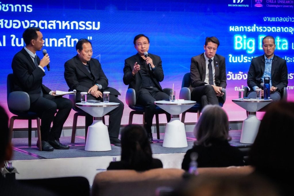 ศ. ดร.ธีรณี อจลากุล ผู้อำนวยการสถาบันข้อมูลขนาดใหญ่ กล่าวว่า การสำรวจครั้งนี้ดำเนินการโดยศูนย์บริการวิชาการแห่งจุฬาลงกรณ์มหาวิทยาลัย ครอบคลุมกลุ่มเป้าหมายทั้งภาครัฐและเอกชนมากกว่า 400 แห่ง เพื่อให้ได้ข้อมูลที่รอบด้านและน่าเชื่อถือ ซึ่งการประเมินครั้งนี้ใช้วิธี Ratio-based Market Sizing พบว่า มูลค่าตลาดอุตสาหกรรม Big Data และ AI ของประเทศไทยในปี 2568 มีมูลค่าประมาณ 41,858 ล้านบาท จากข้อมูลปฐมภูมิกว่า 367 องค์กร ในอุตสาหกรรมวิเคราะห์ผู้ประกอบการใน Value Chain 3 กลุ่ม ได้แก่ ผู้ให้บริการโครงสร้างพื้นฐานและแพลตฟอร์ม, ผู้พัฒนาซอฟต์แวร์และโซลูชัน และผู้ให้บริการที่ปรึกษาและวิเคราะห์ข้อมูล สะท้อนมูลค่าตลาดจากฝั่งผู้ให้บริการ (Supply Side) และสำรวจความต้องการในฝั่งผู้รับบริการ (Demand Side) รวมถึงการยืนยันผลการสำรวจผ่านผู้เชี่ยวชาญในอุตสาหกรรม