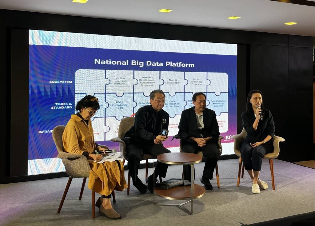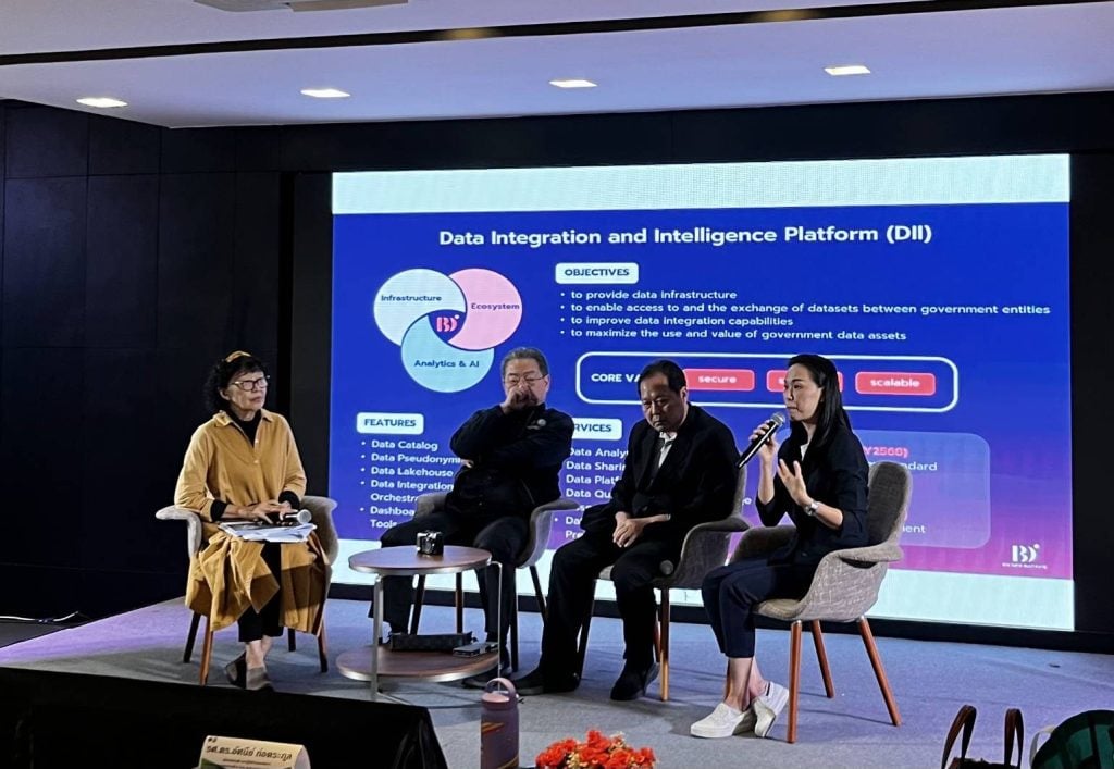ในการเสวนา ดร.ประภาพรรณ ได้นำเสนอประสบการณ์และความสำเร็จของ BDI ในการพัฒนาแพลตฟอร์ม Data Integration and Intelligence (D2) ซึ่งเป็นโครงสร้างพื้นฐานระดับชาติด้านข้อมูล ที่สามารถเชื่อมโยงและบูรณาการข้อมูลจากหลายภาคส่วน พร้อมยกตัวอย่างการประยุกต์ใช้นวัตกรรม AI เพื่อเพิ่มประสิทธิภาพการให้บริการทั้งภาครัฐและอุตสาหกรรม