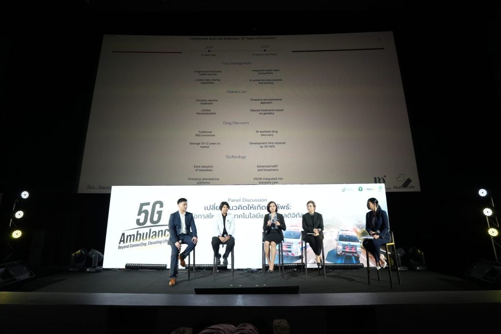 นอกจากนี้ เทคโนโลยีปัญญาประดิษฐ์ (AI) และข้อมูลพันธุกรรม (Genomics) จะเข้ามามีบทบาทสำคัญในการพัฒนา การแพทย์เฉพาะบุคคลและแม่นยำ (Personalized & Precision Medicine) เพราะเมื่อข้อมูลมีการเชื่อมโยงมากขึ้น AI จะยิ่งฉลาดและแม่นยำขึ้น รวมถึงสามารถนำข้อมูลพันธุกรรมมาใช้วางแผนการรักษาที่เฉพาะเจาะจงสำหรับแต่ละบุคคลได้ และด้วยเทคโนโลยี 5G จะช่วยให้เกิด Anywhere Care อย่างเต็มรูปแบบ ผู้ป่วยสามารถรับคำปรึกษาหรือการรักษาได้จากทุกที่ ผ่านการส่งข้อมูลแบบ Real-time ซึ่งให้ประสบการณ์ใกล้เคียงกับการอยู่ในโรงพยาบาล